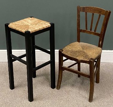 VINTAGE FURNISHING ASSORTMENT, including bedside cabinet, oak bathroom cabinet, stools, and chairs (6)