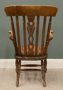 FARMHOUSE ELBOW CHAIR, splat back and upholstered seat, 117 (h) x 69 (w) x 50cms (d)Provenance: deceased estate Conwy