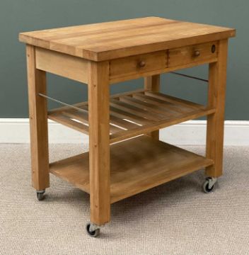 KITCHEN ISLAND / BUTCHER'S BLOCK, beech block type top, on castors, 89 (h) x 90 (w) x 61cms (d)Provenance: private collection Denbighshire