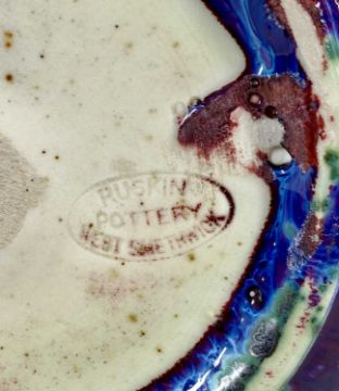 RUSKIN POTTERY HIGH FIRED LONG NECKED BOTTLE VASE, with purple and red body fading to grey on the neck, impressed marks to underside, possibly by William Howson Taylor, 26.5cms (h)Provenance: deceased estate Denbighshire