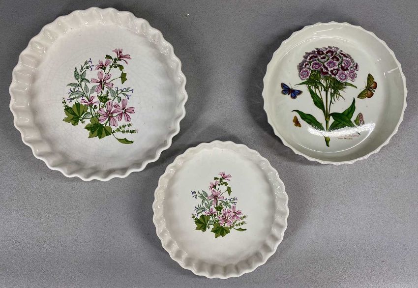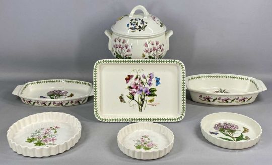 PORTMEIRION POTTERY BOTANIC GARDEN, comprising large circular two-handled tureen and cover, 23cms (diam.), rectangular serving tray, 34 x 23.5cms, circular flan dish, 20cms (diam.), and two similar Ulster Ceramics flan dishes, 24cms (diam.) the largest