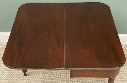 VICTORIAN MAHOGANY FOLD OVER TEA TABLE having single drawer, 73 (h) x 100 (w) x 50cms (d) closed