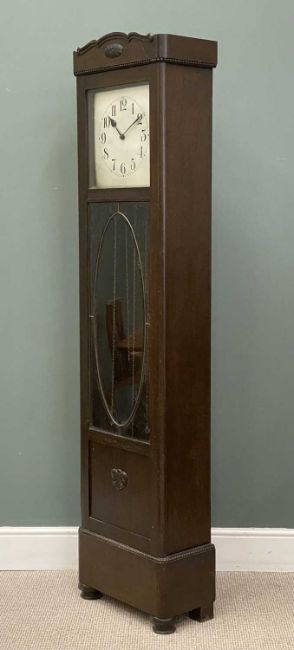 EDWARDIAN OAK LONGCASE CLOCK having silvered dial, 200 (h) x 50 (w) x 25cms (d)Provenance: private collection Conwy