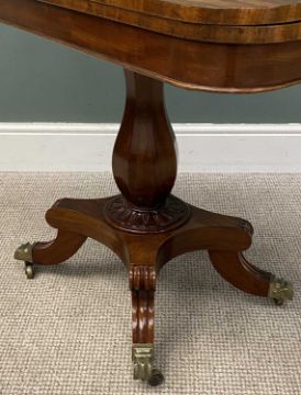 VICTORIAN MAHOGANY FOLD-OVER TEA TABLE on quatrefoil base with brass paw castors, 72.5 (h) x 91 (w) x 45.5cms (d)Provenance: private collection Ynys Môn