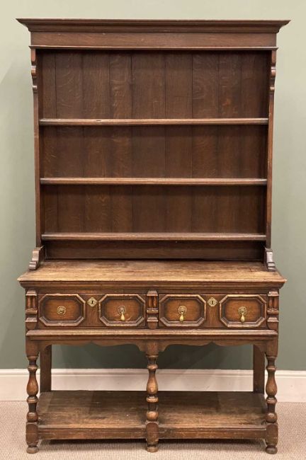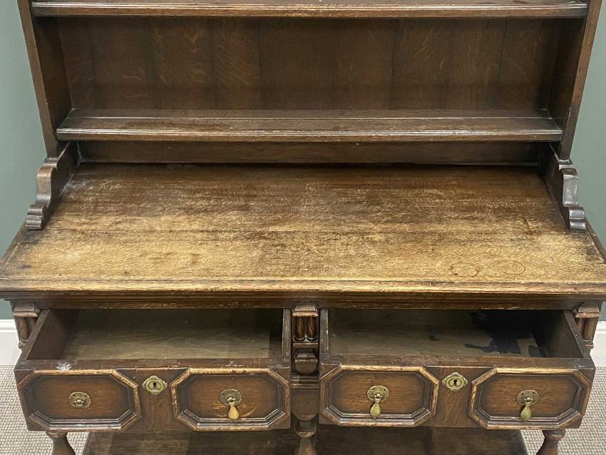 JACOBEAN STYLE OAK DRESSER, 199 (h) x 123 (w) x 54cms (d)Provenance: private collection Wirral