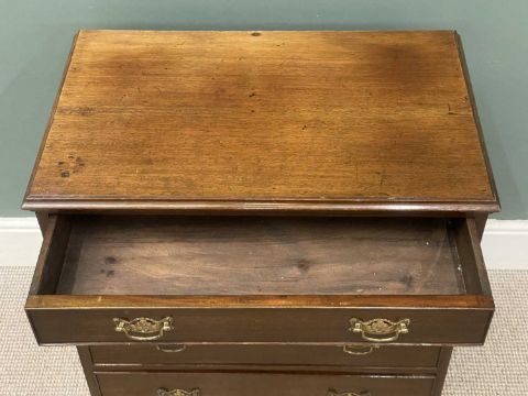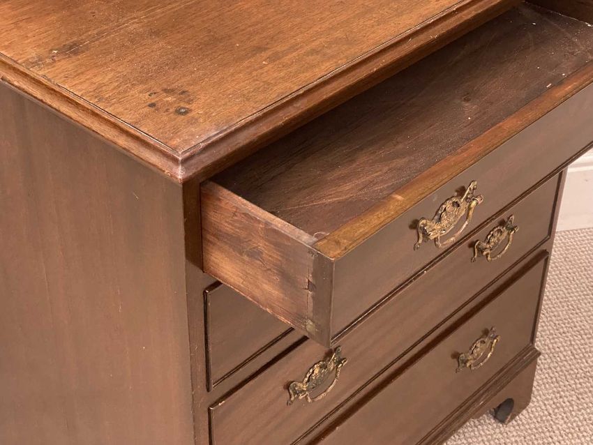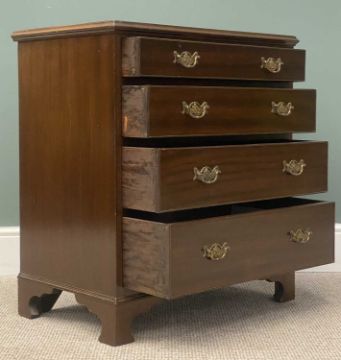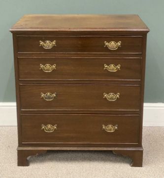 SMALL MAHOGANY CHEST circa 1900, of four drawers, having swing brass drop handles, on bracket feet, a fine example, 81 (h) x 73 (w) x 45cms (d)Provenance: deceased estate Denbighshire