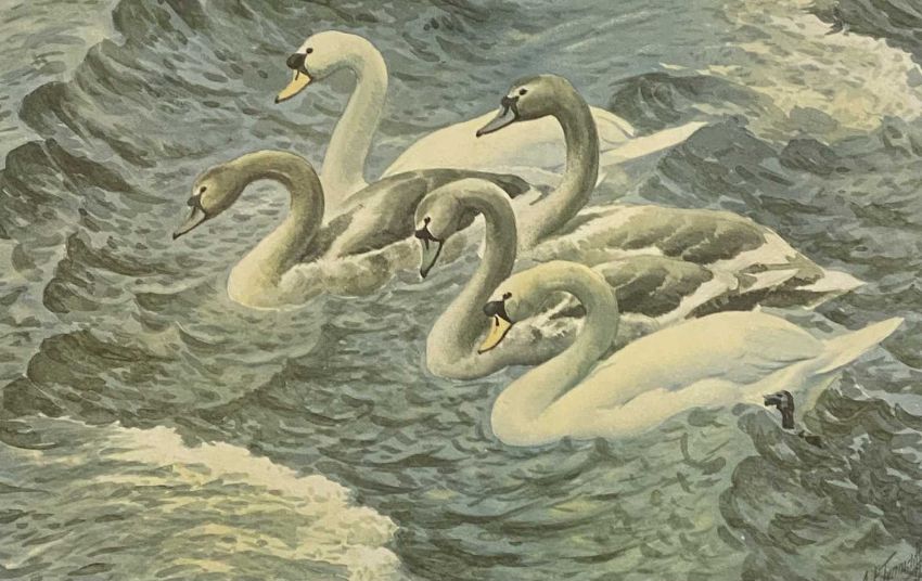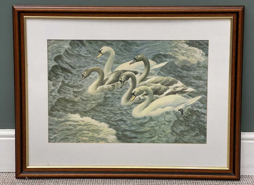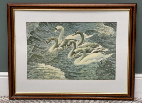 ‡ CHARLES FREDERICK TUNNICLIFFE OBE RA (1901-1979) print - four swans at sea, 39 x 59cmsProvenance: private collection ConwyComments: framed and glazed