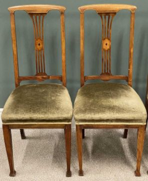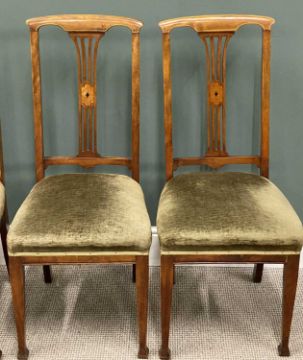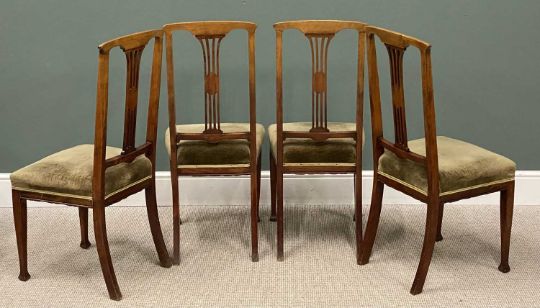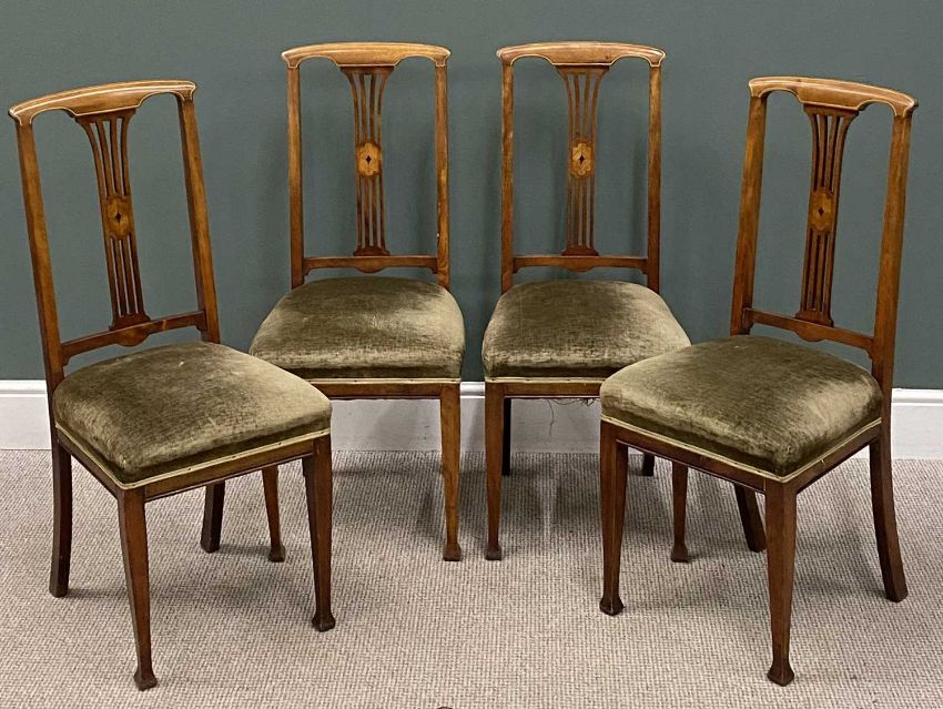 PLUS LOT 40 - SET OF FOUR QUALITY VINTAGE DINING CHAIRS having upholstered seats and inlay back, 102 (h) x 45 (w) x 41cms seat depthProvenance: deceased estate Conwy