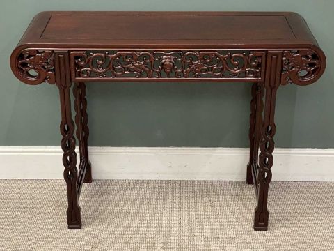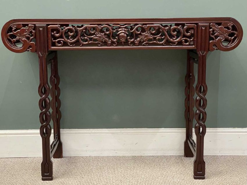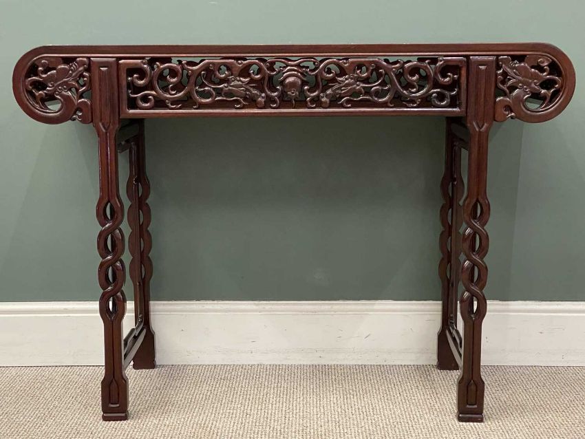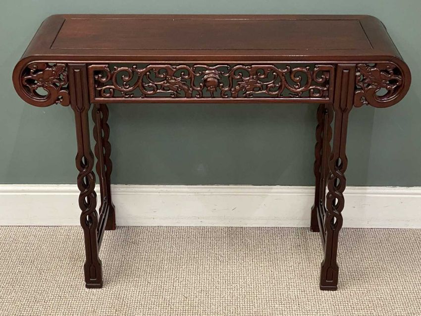 EASTERN HARDWOOD CARVED & PIERCED CONSOLE TABLE, 84 (h) x 120 (w) x 42cms (d)Provenance: private collection Ynys Môn