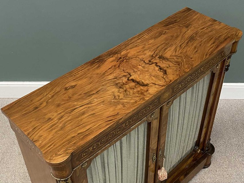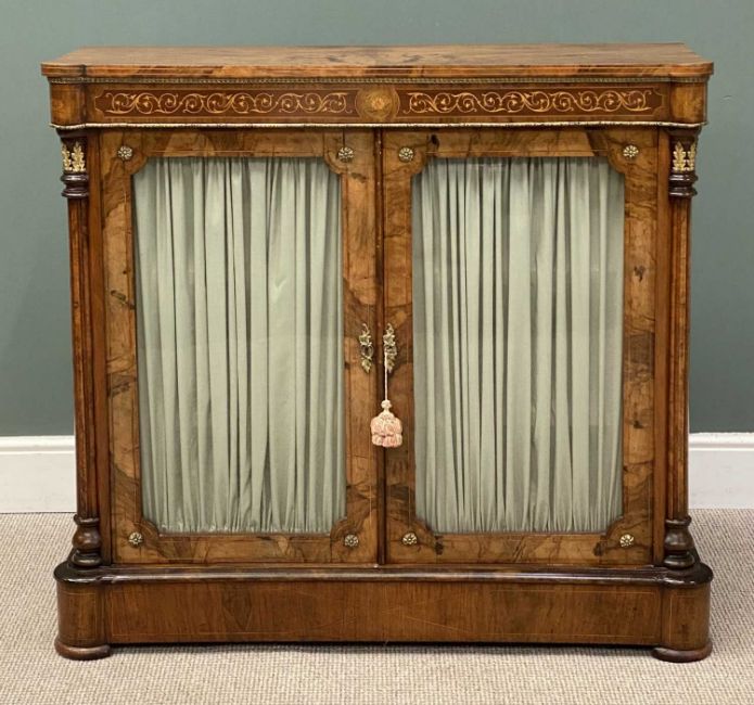 VICTORIAN BURR WALNUT TWO DOOR CREDENZA, a fine example having inlay and gilt metal trim, 108 (h) X 122 (w) X 38cms (d)Provenance: private collection Ynys Môn