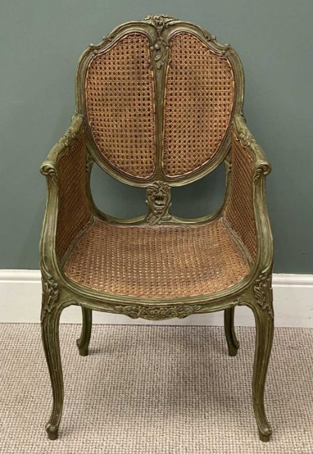 ANTIQUE FRENCH CANE BACK & SEATED ELBOW CHAIR, 96 (h) x 54 (w) x 45cms seat depthProvenance: deceased estate Denbighshire