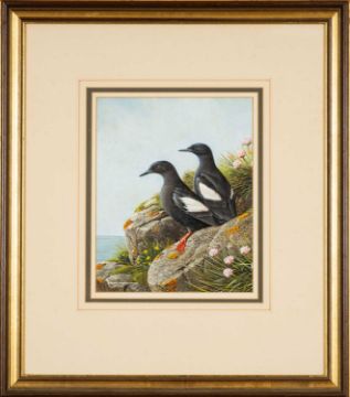 RALPH WATERHOUSE (b.1943) gouache - Guillemots, signed 25 x 20cmsProvenance: private collection Vale of GlamorganComments: minor foxing, framed and glazed.