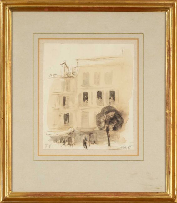 ‡ FELIKS TOPOLSKI (1907-1989) ink & wash - 'Paris Lost', titled on gallery label verso, signed, 22 x 30cmsProvenance: With Rutland Gallery, London, exhib. Nov-Dec 1973, no. 156; private collection NewportComments: W