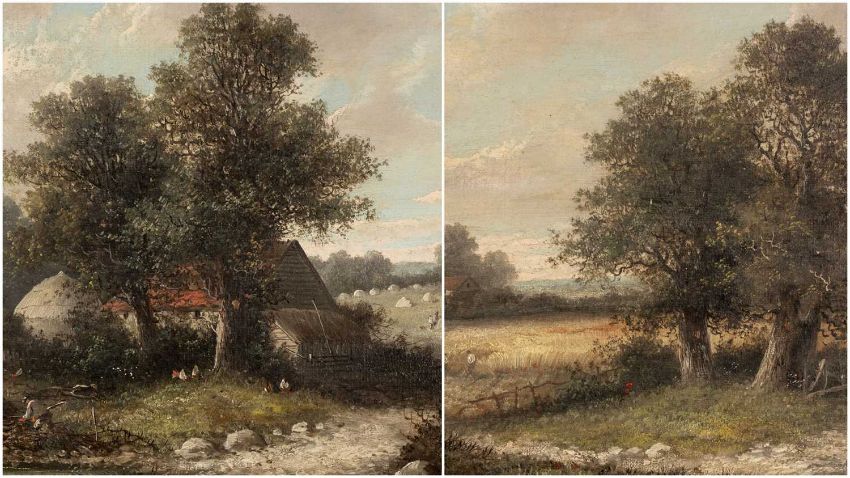 WILLIAM YATES (19th century) oil on canvas - wooded landscapes with cottage and figure, and a companion, signed, 28 x 49cms (2)Provenance: private collection Merthyr Tydfil County Borough