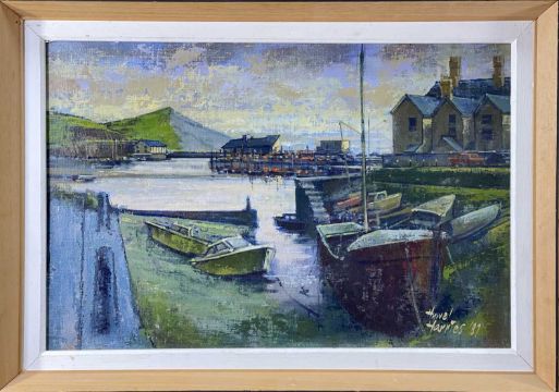 ‡ HYWEL HARRIES (1921-1990) oil on board - Aberystwyth harbour with fishing boats, signed and dated '89, 38 x 58cmsProvenance: private collection NorfolkComments: framed