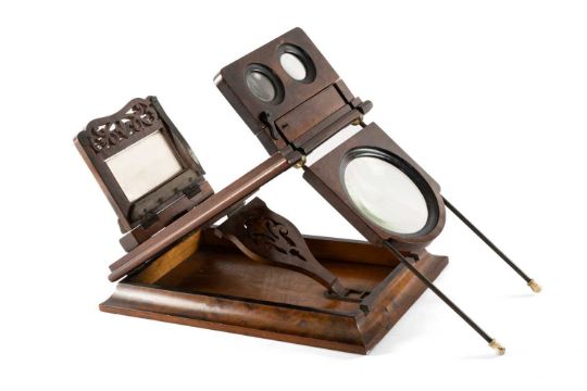 VICTORIAN FOLDING WALNUT GRAPHOSCOPE, base 41 x 24cmsProvenance: private collection Vale of GlamorganComments: one clip broken, minor chips and losses, inspection advised