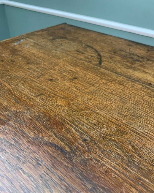 19TH C. OAK SECRETAIRE, the drop flap secretaire drawer front with line inlay, 112 (h) x 111 (w) x 56cms (d)Provenance: private collection CarmarthenshireComments: secretaire drawer front warped/damaged (will not close), general stains & scratches, inspection advised