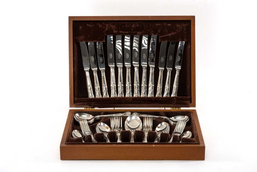 BOXED ARTHUR PRICE CANTEEN OF EPNS FLATWARE, Kings pattern for six place settings.Provenance: private collection BridgendComments: complete and in good condition