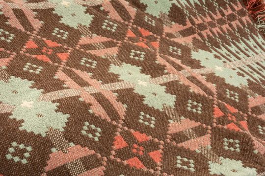 WELSH WOOL CARTHEN (BLANKET), brown, salmon, greenProvenance: private collection CardiffComments: moth holes present