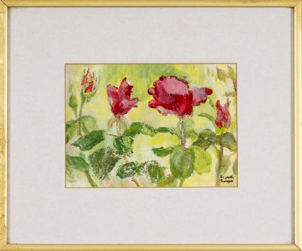 ‡ ELIZABETH THOMAS (b.1930) acrylic (a pair) - two flower studies, entitled verso, 'Red Roses' and 'Red Campion' on Attic Gallery labels, both 13 x 18cmsProvenance: deceased estate SwanseaComments: framed, glazed