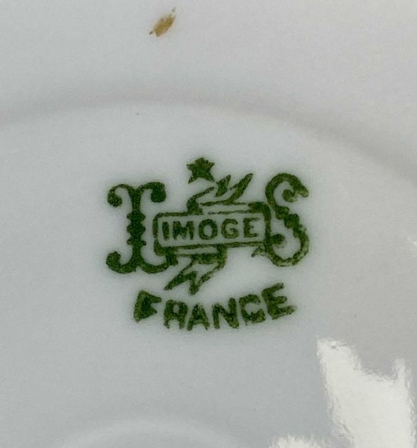 LIMOGES PORCELAIN CABARET SET, late 18th/early 19th century, cream ground with green flowers and gilded highlights, four cups, four saucers, teapot, milk jug, and lidded sucrier, on shaped rectangular tray, 38 x 32cmsProvenance: deceased collection Conwy