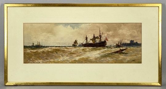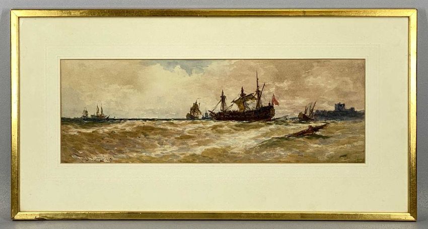 THOMAS BUSH HARDY (1842 - 1897) watercolour - three-master and other and other shipping, possibly off Dover signed and dated 1892, 18 x 52cmsProvenance: private collection ConwyComments: framed and glazed