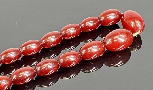 CHERRY AMBER BAKELITE BEAD NECKLACE, largest bead 21 x 13mms, 44cms (l), approx. wt. 26gProvenance: private collection Conwy