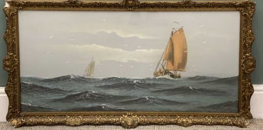 MARITIME SCHOOL mixed media - sail boats on high seas, indistinctly signed, 48.5 x 99cmsProvenance: private collection ConwyComments: framed and glazed