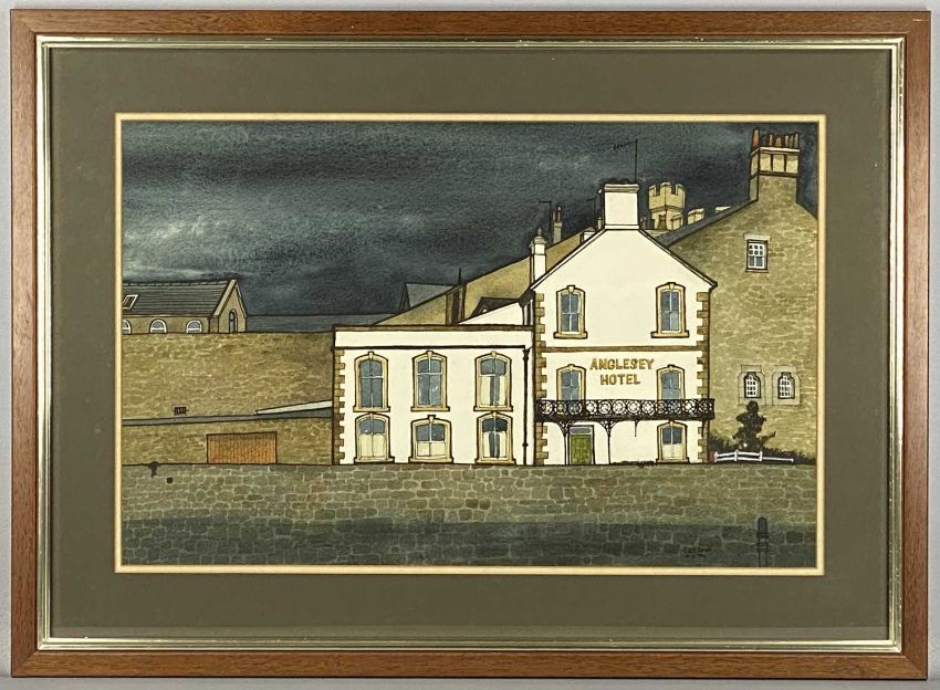 T. A. E. JONES watercolour - Anglesey Hotel, Caernarfon, signed and dated 14.XI.84 lower right, 38.5 x 60cmsProvenance: private collection Denbighshire
