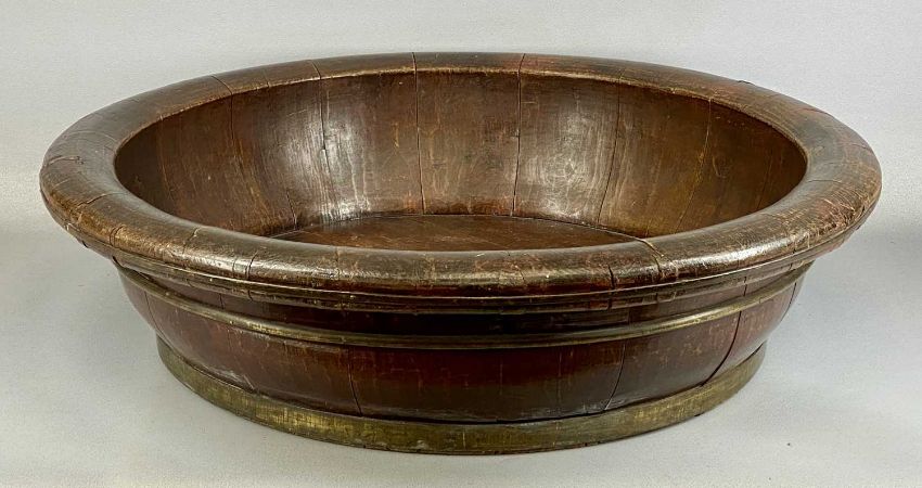 LARGE CHINESE BAMBOO RICE BOWL with brass bands, 78cms (diam.)Provenance: private collection Conwy