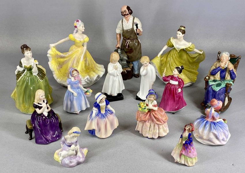 COLLECTION OF FIFTEEN ROYAL DOULTON FIGURINES, including 'Cissie' HN1809, 'The Paisley Shawl' M4, 'Wendy' HN2109, 'Affection' HN2236, and 'Dinky Do' HN1678Provenance: private collection Surrey