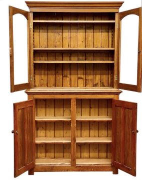 PITCH PINE CUPBOARD BOOKCASE, late 19th century, glazed double doors to the upper section, 228 (h) x 130 (w) x 40cms (d)Provenance: Conwy County Council, Bodlondeb Civil Offices, Conwy
