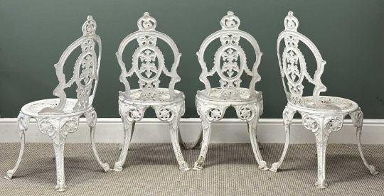 PAINTED ALUMINIUM GARDEN FURNITURE SET, circular table and four chairs (5)Provenance: deceased estate Conwy