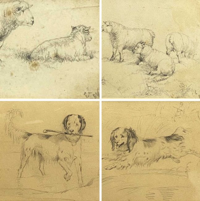 ATTRIBUTED TO SIR EDWIN LANDSEER (1802-1873) four pencil sketches - dogs and sheep, monogrammed, 12.5 x 23cms the largest (4)Provenance: private collection ConwyComments: framed and glazed