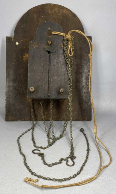 BLACK FOREST SHIELD WALL CLOCK, floral painted arched dial, black Roman numerals, 45 (h) x 33 (w) x 16cms (d)