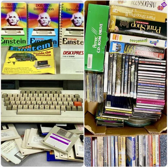 RETRO GAMING / COMPUTING: TATUNG EINSTEIN COLOUR MICROCOMPUTER with instruction and reference manuals, large quantity of games and program discsProvenance: private collection Conwy