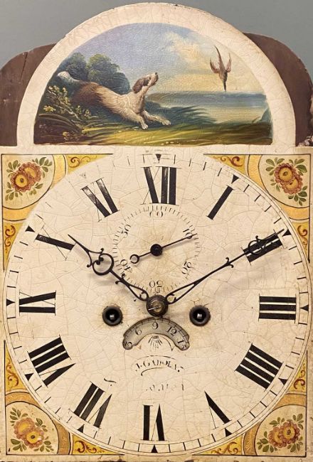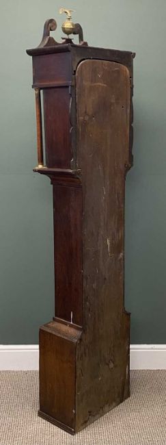 19TH CENTURY OAK LONGCASE CLOCK, painted dial with subsidiary seconds dial and date arch, single weight and pendulum, 209 (h) x 49 (w) x 26cms (d)Provenance: private collection Conwy