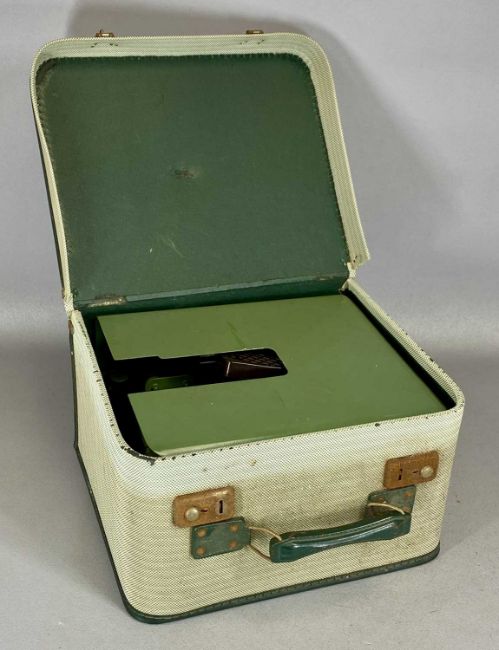 VINTAGE JONES ELECTRIC SEWING MACHINE with case; vintage Cresta electric sewing machine with case; and a Dymo-mite Tapewriter (3)Provenance: deceased estate Conwy