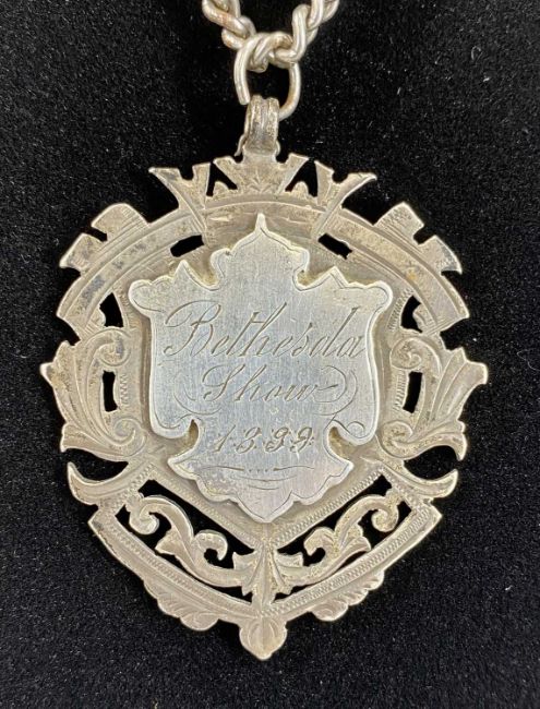 LARGE VICTORIAN FOB MEDAL, shield shape with pierced border, engraved 'Bethesda Show, 1899', Charles Edward Soloman, Chester 1899, 55 x 45mms, 28gProvenance: private collection Denbighshire