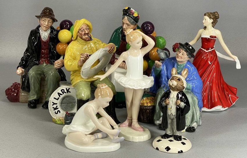 EIGHT ROYAL DOULTON FIGURES, to include Little Ballerina, 'The Boatman' HN2417, 'Tuppence a Bag' HN2320, etc.Provenance: deceased estate Denbighshire