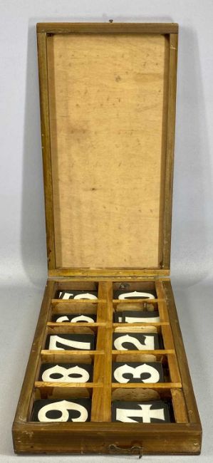 WOODEN BOX OF HYMN NUMBERSProvenance: deceased estate Denbighshire