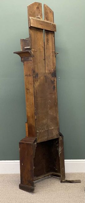19TH CENTURY OAK & MAHOGANY LONGCASE CLOCK, hood with broken swan neck pediment, painted enamel dial with subsidiary seconds dial and date arch, case with reeded quarter columns, 220 (h) x 54 (w) (max) x 25cms (d)Provenance: private collection Flintshire