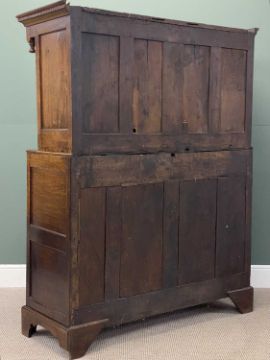 18TH CENTURY JOINED OAK DEUDDARN, upper section with three cupboards having arched fielded panel doors, lower section with three drawers over double cupboard, on bracket feet, 181 (h) x 140 (w) x 52cms (d)Provenance: private collection Conwy