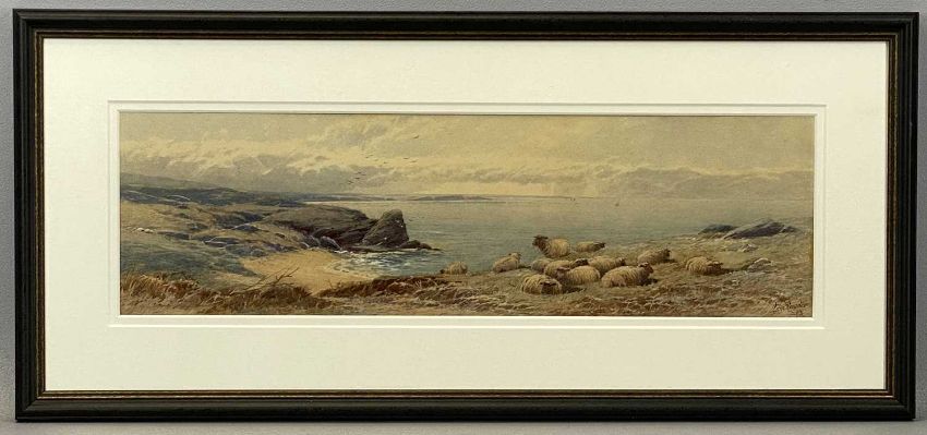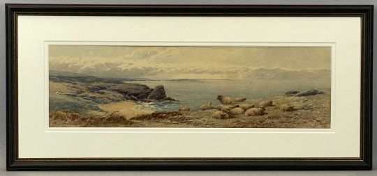 TOM ROWDEN (British, 1842-1926) pair of watercolours - sheep and cattle, signed and dated 1895, 15 x 53cms (2)Provenance: private collection Ynys Môn