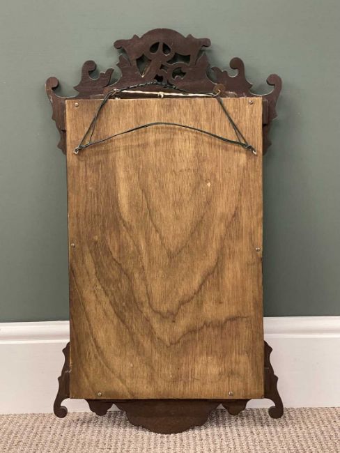 GEORGIAN STYLE WALNUT FRET FRAMED WALL MIRROR, surmounted with a gilded phoenix, 70 (h) x 40cms (w)Provenance: private collection Conwy