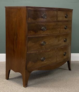 19TH CENTURY MAHOGANY BOW FRONT CHEST with splayed supports, 106 (h) x 106 (w) x 53cms (d)Provenance: private collection Conwy