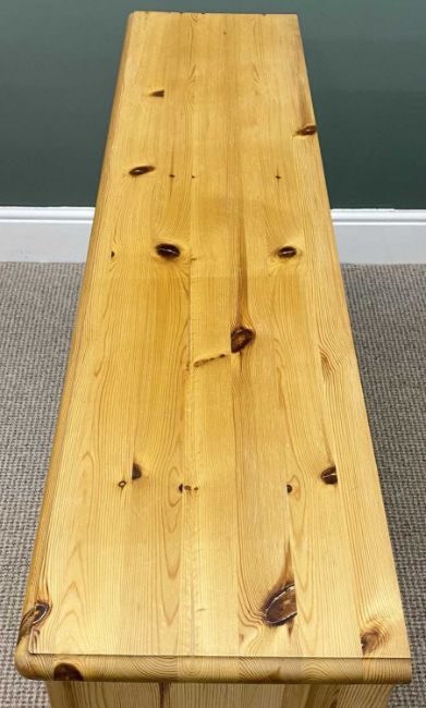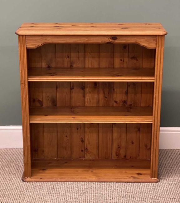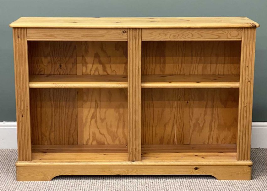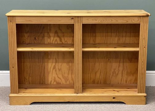 TWO PINE BOOKCASES, one having two adjustable shelves, 92 (h) x 85 (w) x 29cms (d); other with single adjustable shelf, 80 (h) x 120 (w) x 29cms (d)Provenance: private collection Conwy