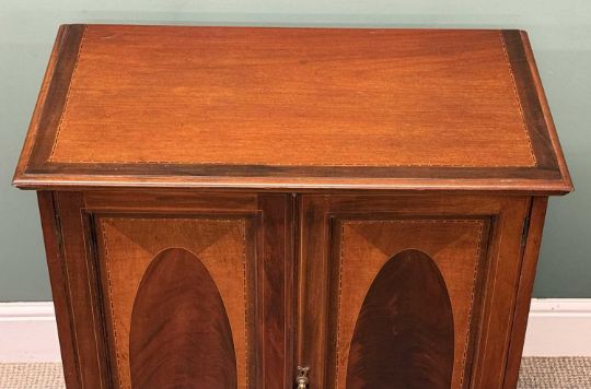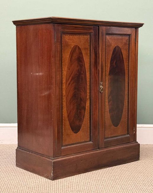 TWO DOOR MAHOGANY CUPBOARD, inlay to front panels with oval detail, 92 (h) x 76 (w) x 42cms (d)Provenance: private collection Conwy
