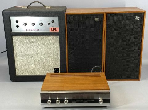 WHARFEDALE LINTON AMPLIFIER, custom sound Mighty Atom amplifier, and a pair of Wharfedale Linton 2 stereo speakersProvenance: deceased estate Conwy