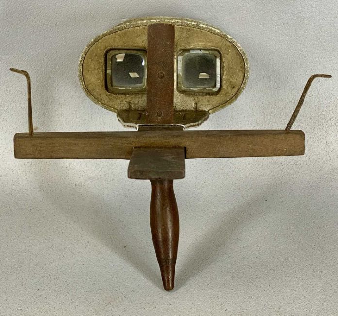 19TH CENTURY UNDERWOOD & UNDERWOOD HANDHELD STEREOSCOPIC VIEWER, with a large assortment of viewing cards, approx. 100